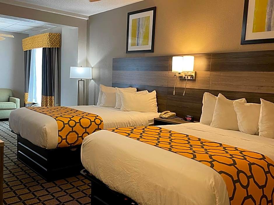 Start the day with a breakfast offering to fuel adventures, then dip into a seasonal, heated indoor pool with a shallow end for a relaxed splash after exploring West Plains.